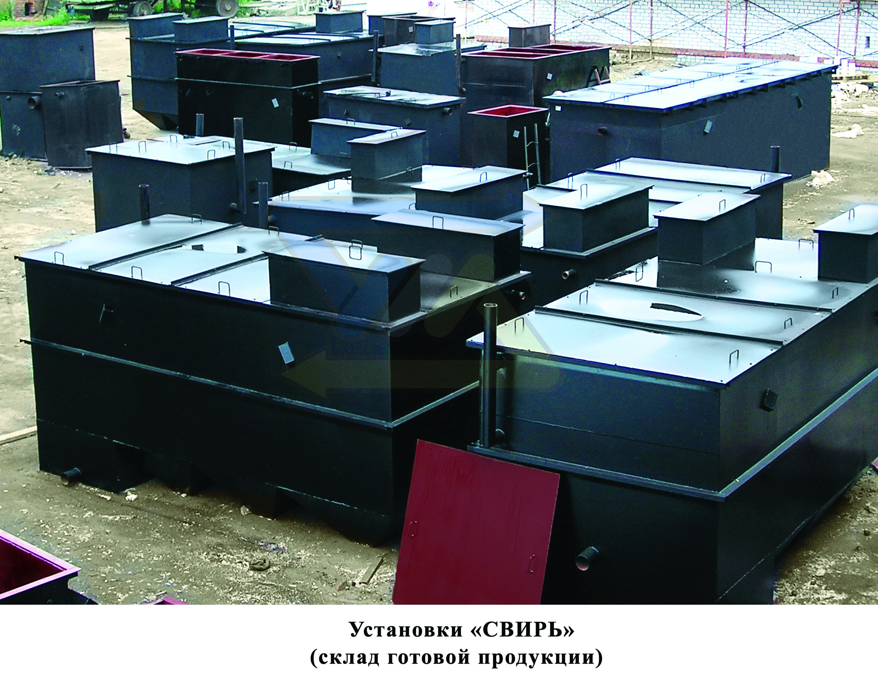 Установка «СВИРЬ-10УН» с производительностью 10 л/сек. предназначена для очистки поверхностных сточных вод (дождевых и талых) на территориях автозаправочных станций, автостоянок, складов горюче-смазочных материалов, нефтебаз, промышленных зон и жилых районов с примерной площадью водосбора до 1 га.